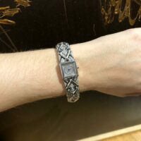 Bracelet serti de diamants; Lunette pavée de diamants.